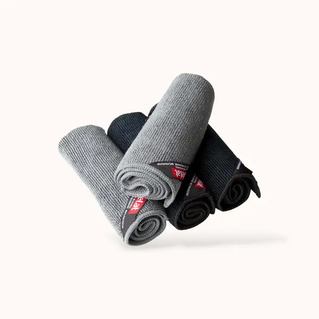 Deze verpakking bevat vier doekjes; twee zwarte en twee grijze doekjes.